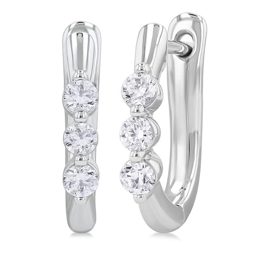 Davis Classics 14k White Gold Three Stone Diamond Hoop Earrings
