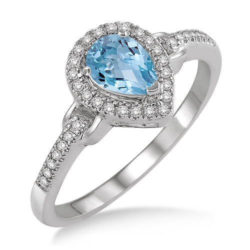 Davis Classics 14k White Gold Teardrop Aquamarine and Diamond Halo Ring