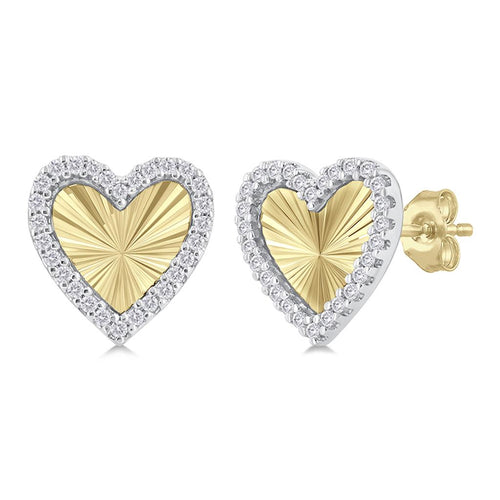 Davis Classics 14k Yellow and White Gold Diamond Halo Fluted Heart Stud Earrings