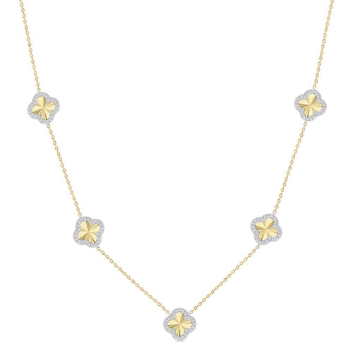 Davis Classics 14k Yellow and White Gold Fluted Diamond Clover Station Necklace