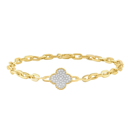 Davis Classics 14k Yellow Gold Diamond Clover Station Paperclip Bracelet