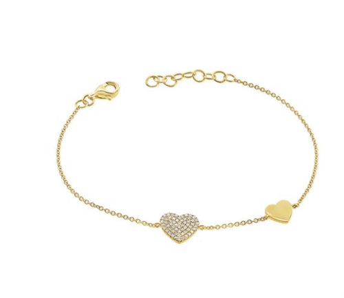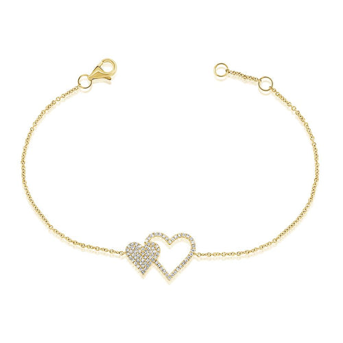 Davis Classics 14k Yellow Gold Double Heart Diamond Station Bracelet