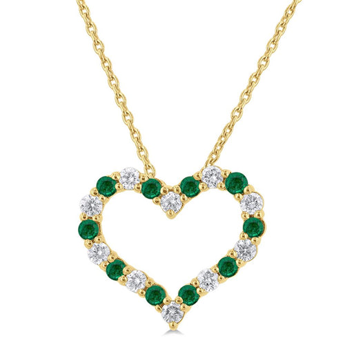 Davis Classics 14k Yellow Gold Emerald and Diamond Heart Pendant Necklace