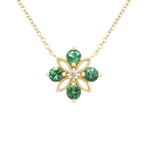 Davis Classics 14k Yellow Gold Emerald and Diamond Floral Pendant Necklace