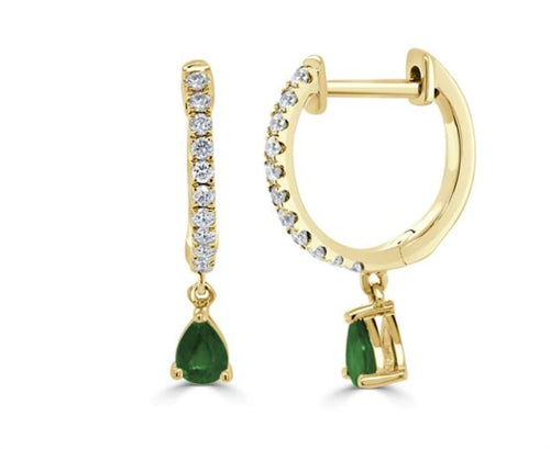 Davis Classics 14k Yellow Gold Emerald and Diamond Hoop Earrings