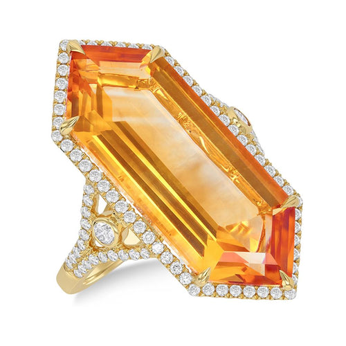 Davis Classics 14k Yellow Gold Geometric Halo Citrine and Diamond Fashion Ring