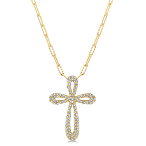 Davis Classics 14k Yellow Gold Paperclip Chain Diamond Cross Pendant Necklace