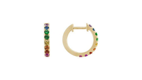 Davis Classics 14k Yellow Gold Multi-Colored Sapphire Huggie Hoop Earrings
