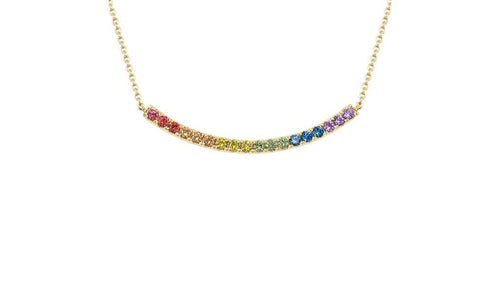 Davis Classics 14k Yellow Gold Multi-Colored Sapphire Curved Bar Pendant Necklace