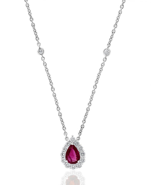 Davis Classics 18k White Gold Diamond by the Yard Ruby Halo Pendant Necklace