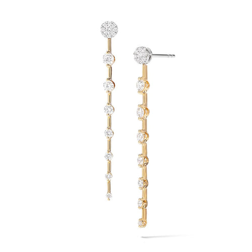 Davis Classics 18k Yellow and White Gold Linear Bar Diamond Drop Earrings