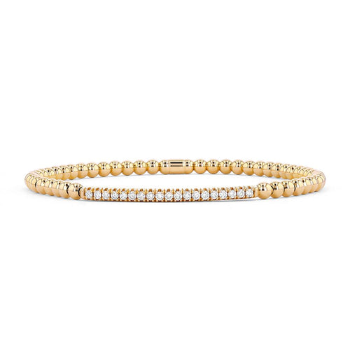 Davis Classics 18k Yellow Gold Couture Diamond Bar Bead Stretch Bangle Bracelet