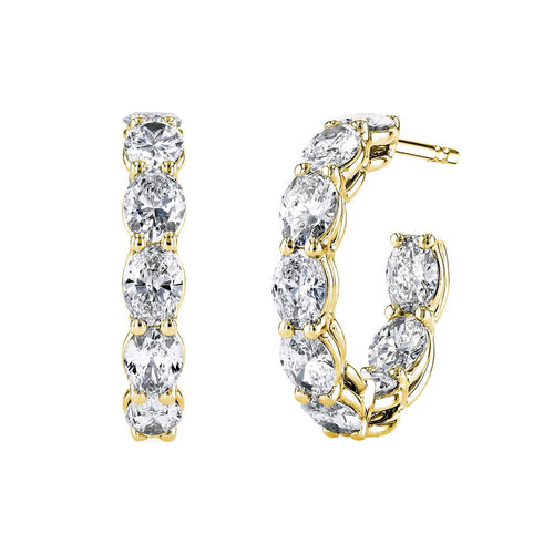 Davis Classics 18k Yellow Gold Elongated Oval In-and-Out Diamond Hoop Earrings