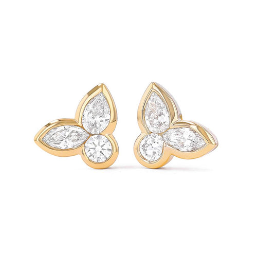 Davis Classics 18k Yellow Gold Couture Duchess Floral Diamond Stud Earrings