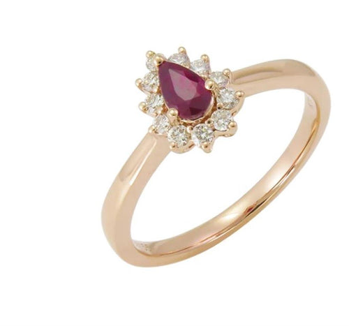 Davis Classics 18k Yellow Gold Pear Halo Ruby Ring