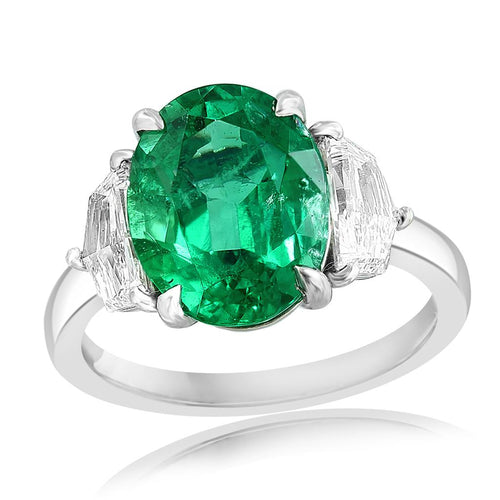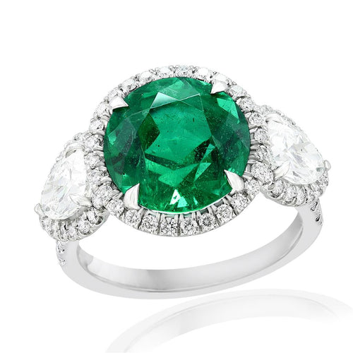 Davis Classics Platinum Halo Three-Stone Zambian Emerald and Diamond Ring