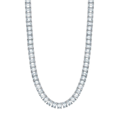 Davis Classics Platinum Emerald-Cut Diamond Tennis Necklace