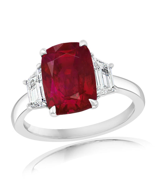 Davis Classics Platinum Three-Stone Madagascar Ruby and Diamond Ring