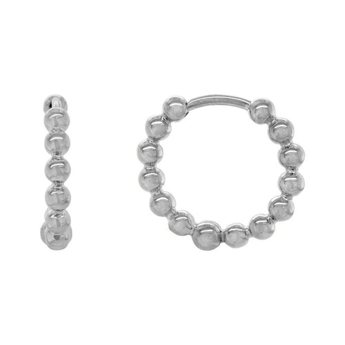 Davis Classics Sterling Silver Rhodium-Plated Bead Hoop Earrings