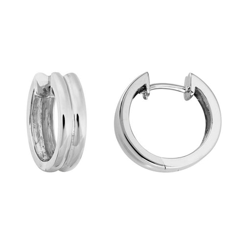 Davis Classics Sterling Silver Rhodium-Plated Rounded Hoop Earrings