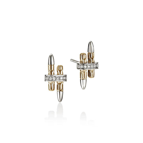 John Hardy 14k Yellow Gold and Sterling Silver Spear Diamond Stud Earrings