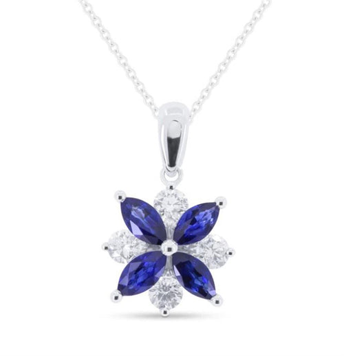 Madison L 14k White Gold Floral Design Blue Sapphire and Diamond Pendant