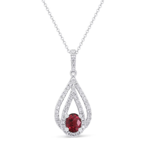 Madison L 14k White Gold Double Open Teardrop Ruby and Diamond Pendant