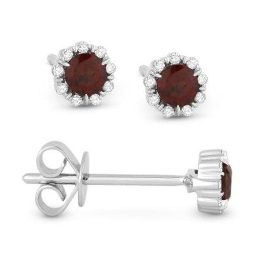 Madison L 14k White Gold Garnet Halo Stud Earrings