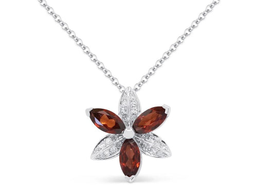 Madison L 14k White Gold Garnet and Diamond Floral Pendant Necklace