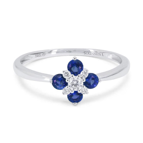 Madison L 14k White Gold Floral Design Blue Sapphire and Diamond Fashion Ring