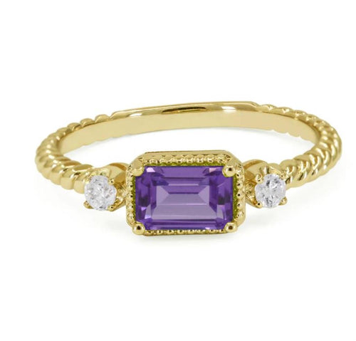 Madison L 14k Yellow Gold Stackable Amethyst and Diamond Fashion Ring
