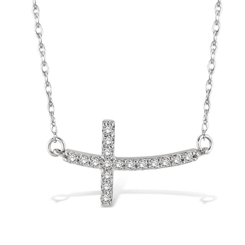 Davis Classics 14k White Gold Diamond Sideways Cross Necklace