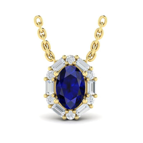 Vlora 14k Yellow Gold Adella Color Collection Halo Design Sapphire and Diamond Pendant Necklace