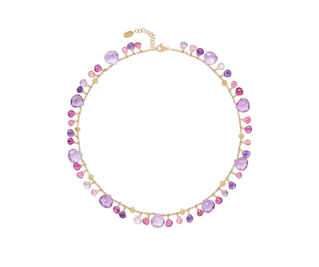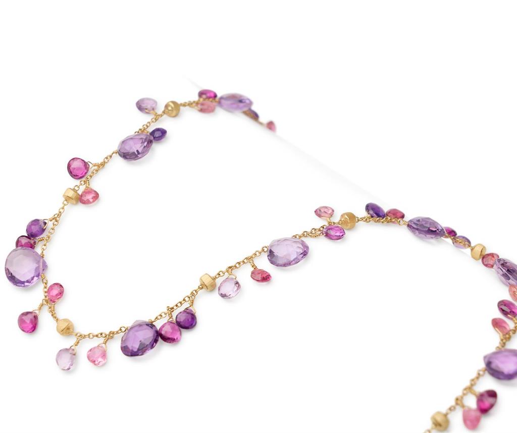 Marco Bicego Paradise Collection18K Yellow Gold Short Necklace with Amethyst and Pink Tourmaline