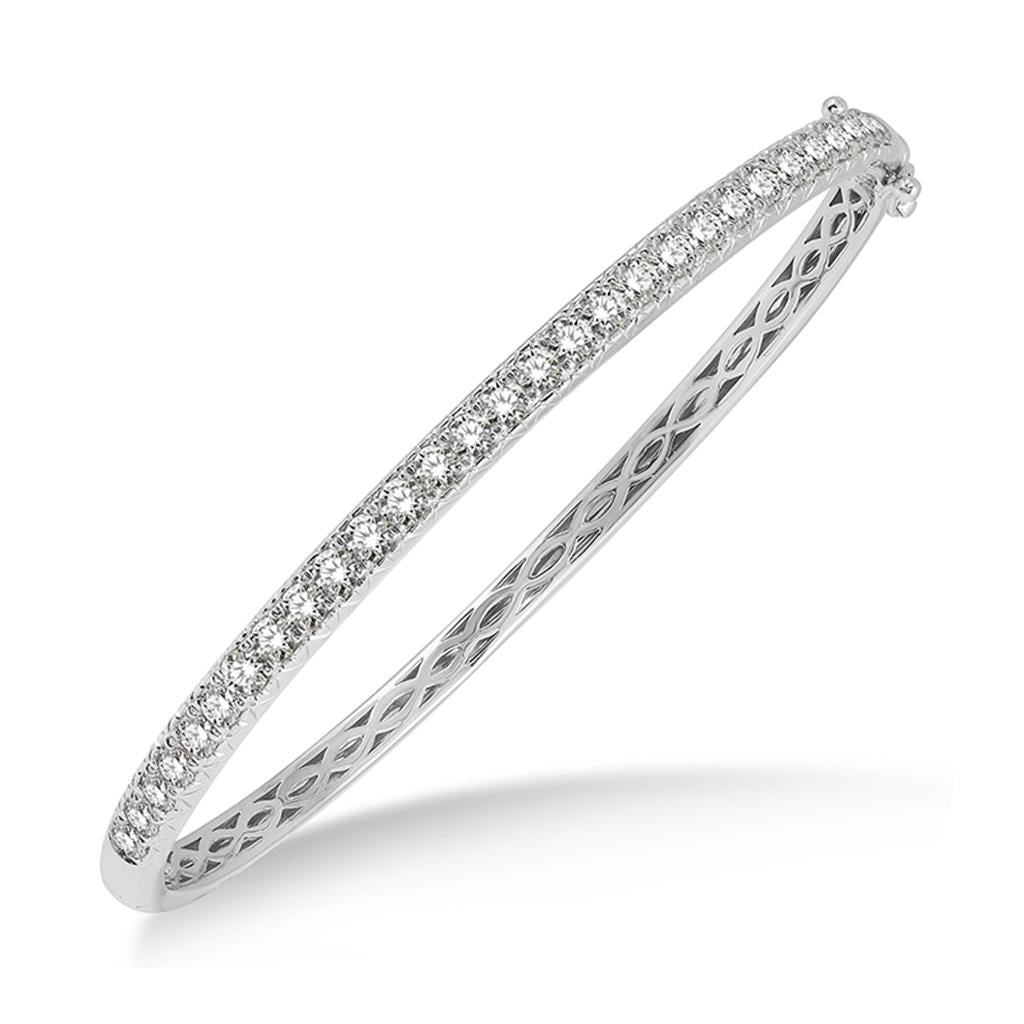 Davis Classics 14k White Gold Classic Diamond Hinged Bangle Bracelet