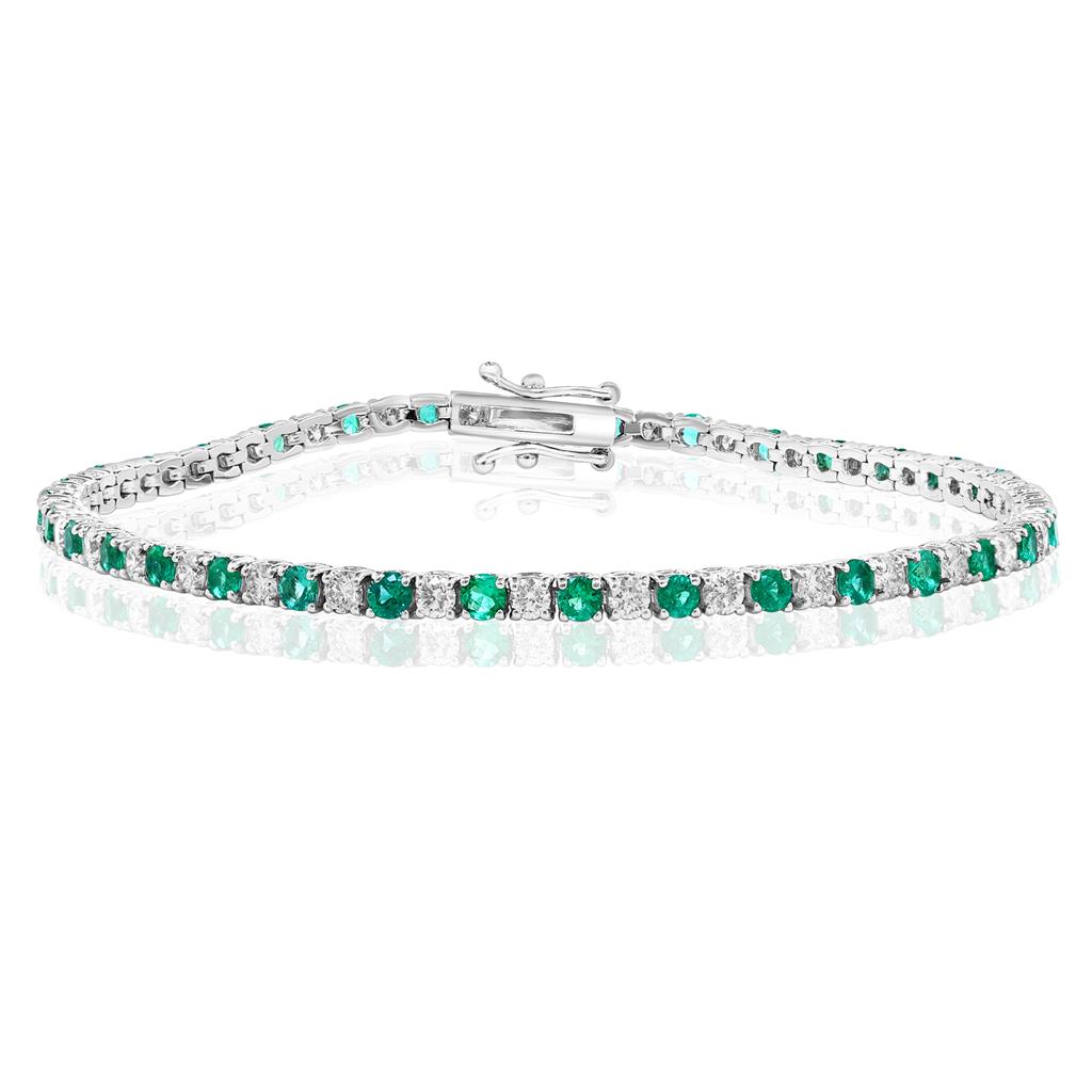 Davis Luxe 14k White Gold Emerald and Diamond Tennis Bracelet