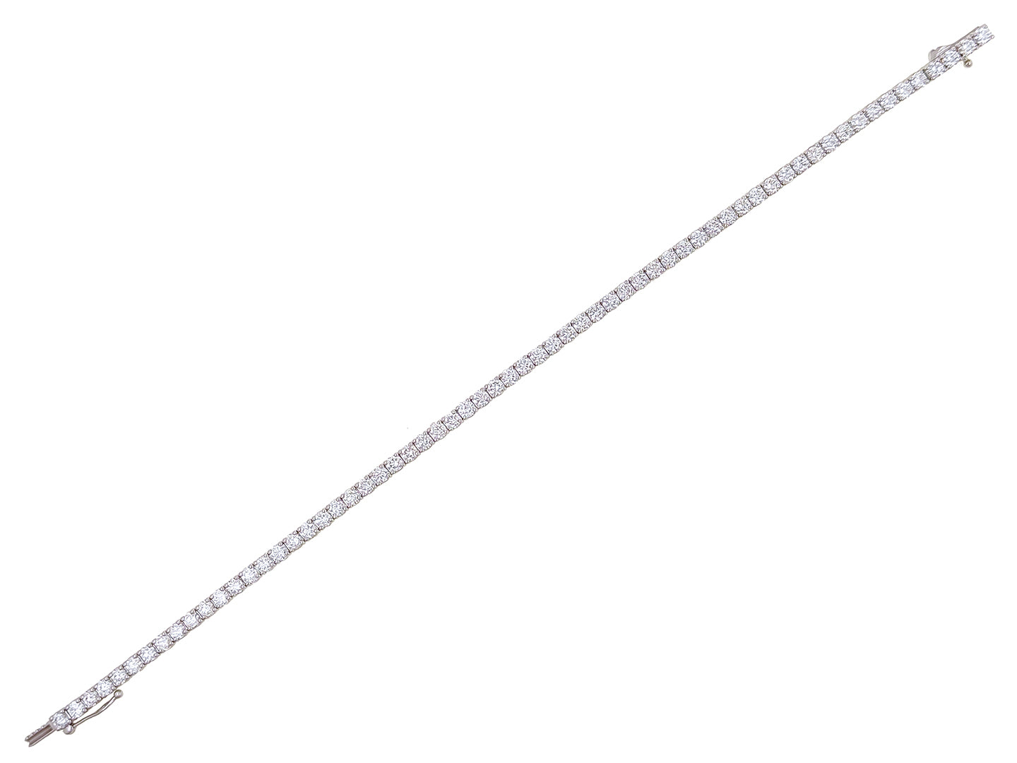 This refined Davis Luxe 14k white gold tennis bracelet is a classic statement of brilliance, adorned with 64 round brilliant-cut diamonds totaling 3.98 carats. Each diamond is securely set in a 4-prong straight-line design, radiating with G/H color and SI clarity for a luminous, continuous sparkle. Measuring 7 inches in length and secured with a locking push clasp, this bracelet combines timeless elegance with exceptional craftsmanship.