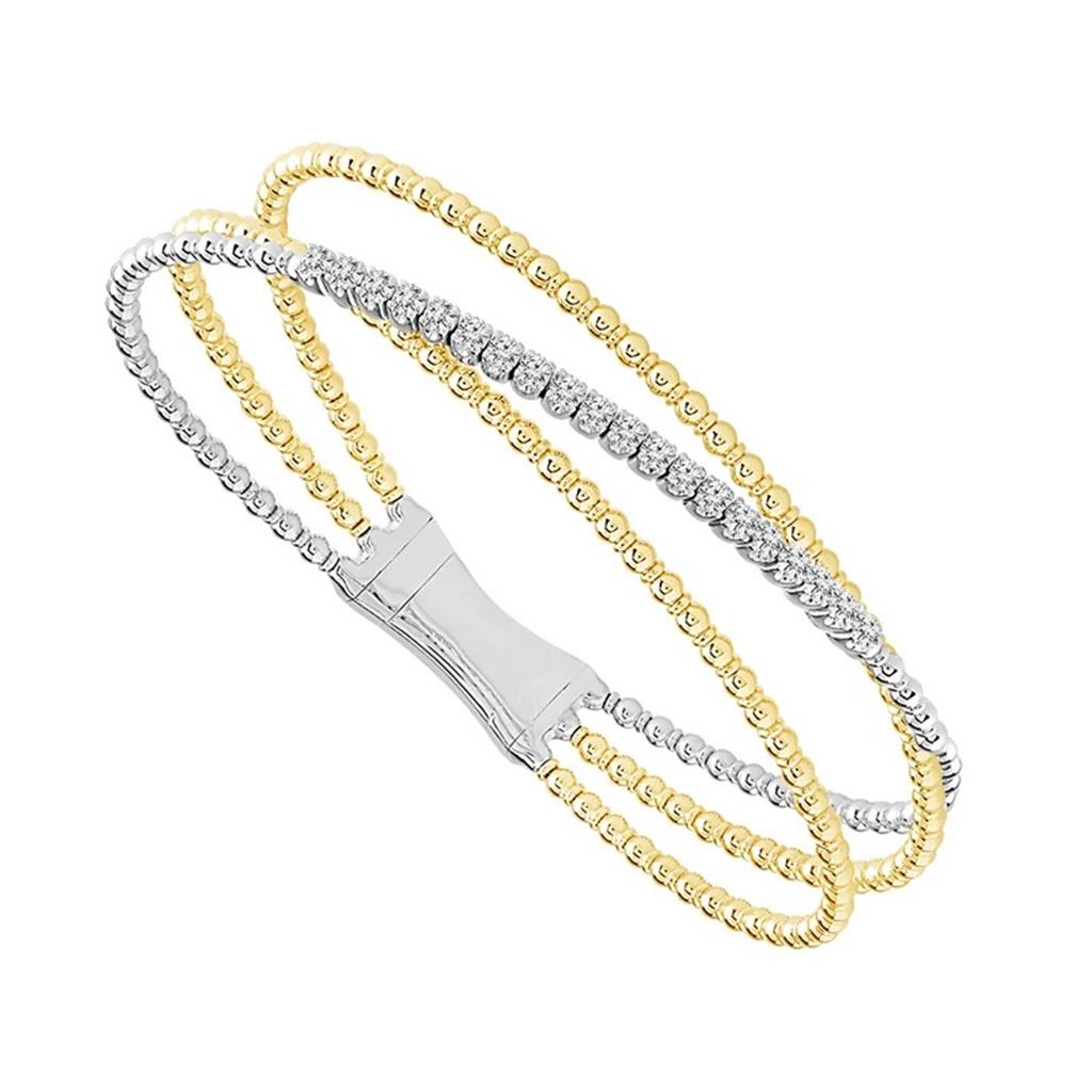 Davis Signature 14k Yellow and White Gold Flexie Collection Three-Row Beaded Crossover Diamond Bangle Bracelet