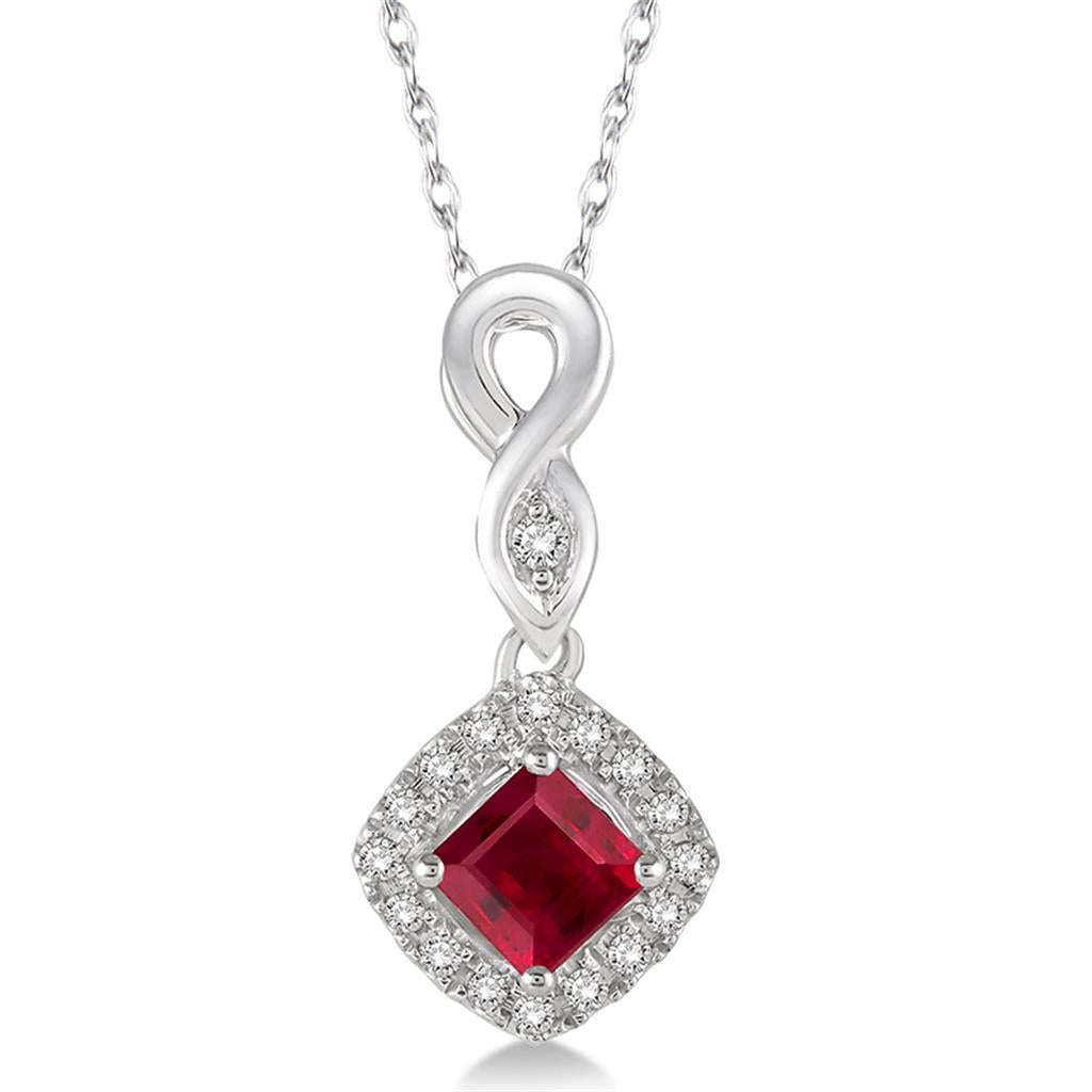 Davis Classics 14k White Gold Cushion-Cut Ruby and Diamond Halo Drop Pendant Necklace
