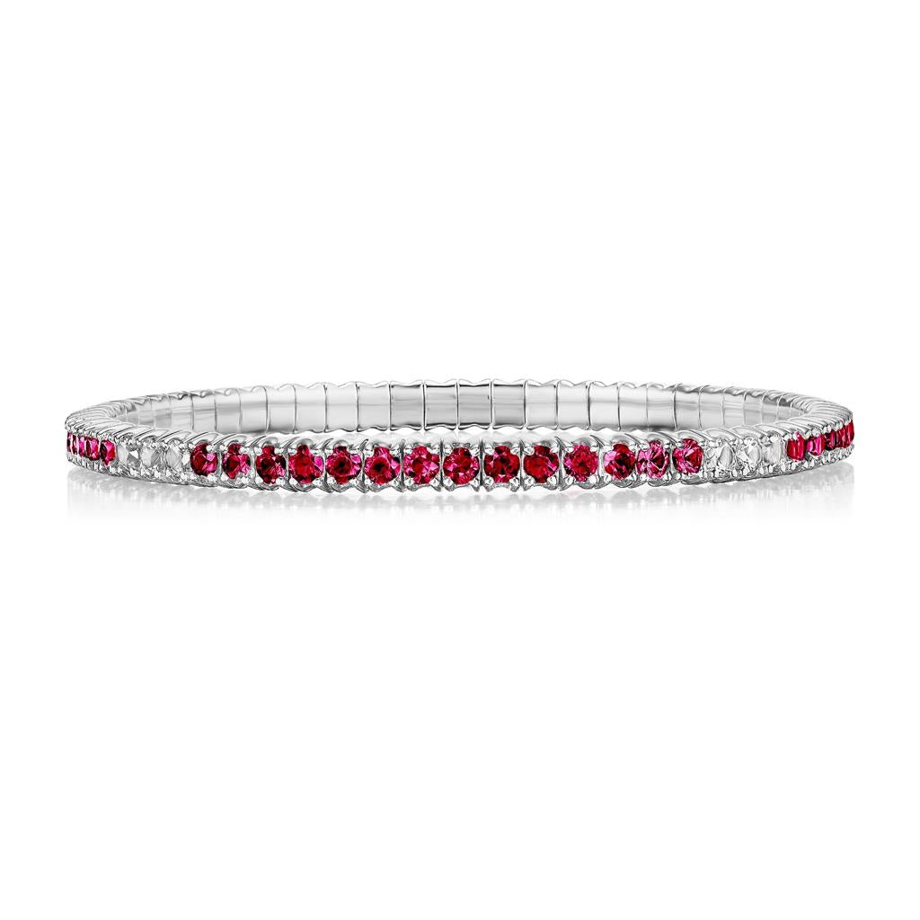 Davis Classics 18k White Gold Ruby and Diamond Stretch Tennis Bracelet