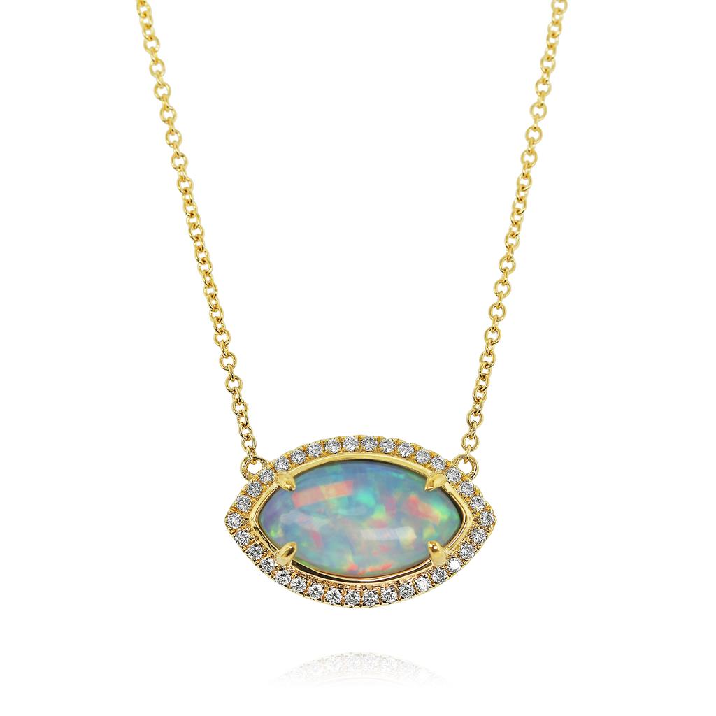 Yael Designs 14k Yellow Gold Diamond by the Yard White Opal Pendant Necklace