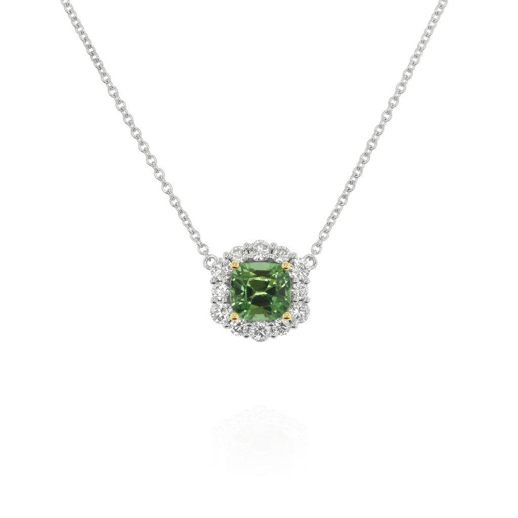 Yael 18k White and Yellow Gold Afghan Green Tourmaline and Diamond Halo Pendant Necklace