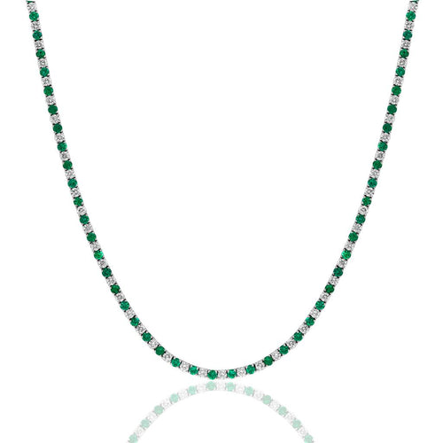 Davis Classics 14k White Gold Emerald and Diamond Tennis Necklace