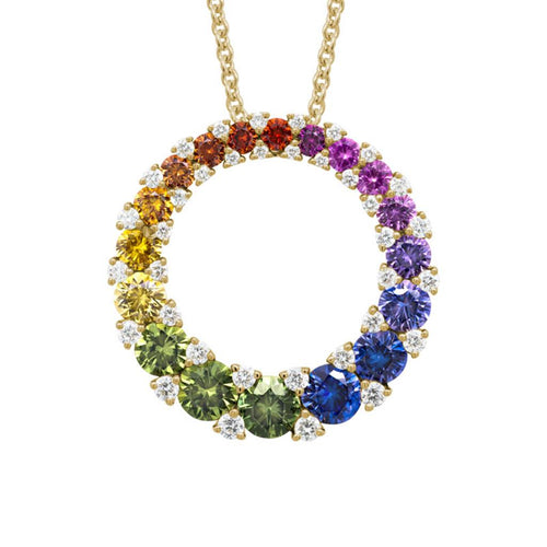 Davis Classics 14k Yellow Gold Multi-Color Sapphire and Diamond Open Circle Pendant Necklace