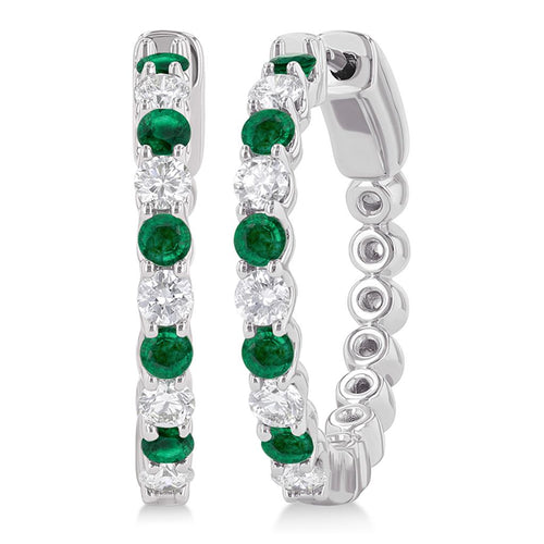 Davis Classics 14k White Gold Emerald and Diamond Hoop Earrings