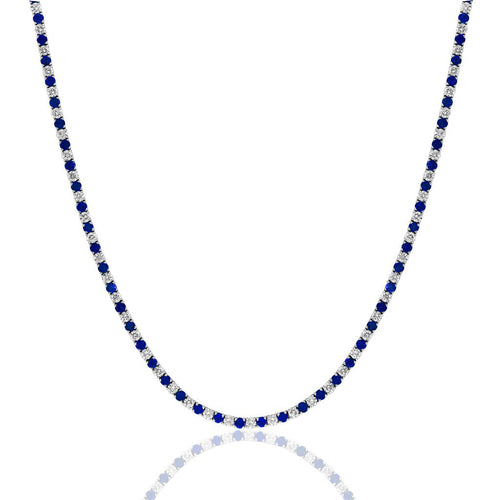 Davis Classics 14k White Gold Ceylon Blue Sapphire and Diamond Tennis Necklace