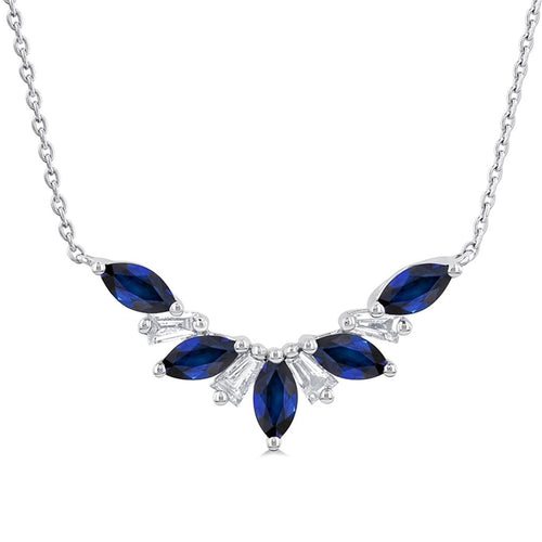 Davis Classics 14k White Gold Contour Sapphire and Diamond Bar Pendant Necklace