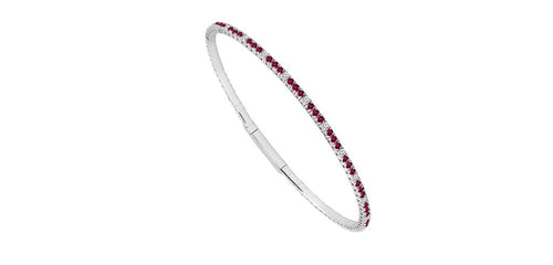 Davis Classics 14k White Gold Flexie Collection Ruby and Diamond Bangle Bracelet
