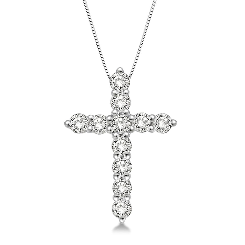 Davis Signature 14k White Gold Classic Diamond Cross Pendant Necklace