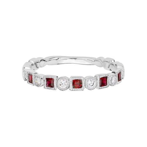 Davis Classics 14k White Gold Ruby and Diamond Stackable Band